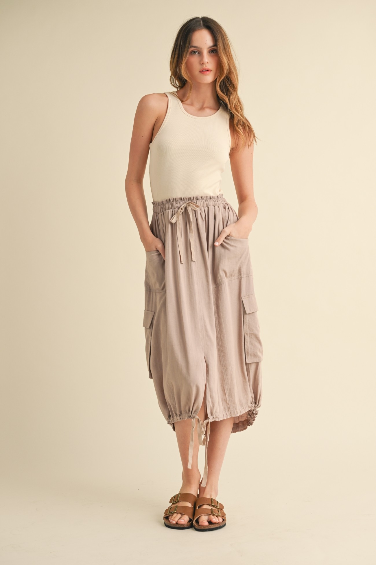 Elevate your wardrobe with the sophisticated twofer gathered midi dress, perfectly tailored for the modern, discerning professional. This versatile piece combines effortless style with ultimate comfort, making it an essential addition to your high-end clothing collection. Timeless Design: The classic midi length and gathered details create a silhouette that flatters all body types. Premium Fabric: Crafted from high-quality materials, ensuring lasting durability and a luxurious feel. Effortless Elegance: Ideal for professional settings or classy social gatherings, adding a touch of sophistication to any occasion. Customizable Fit: Features an adjustable waistband that provides personalized comfort and style. Pockets for Convenience: Practical side pockets maintain functionality without sacrificing style. Model is wearing a size S Model : 5’9″ – B 32″ – W 24″ – H 36.5″