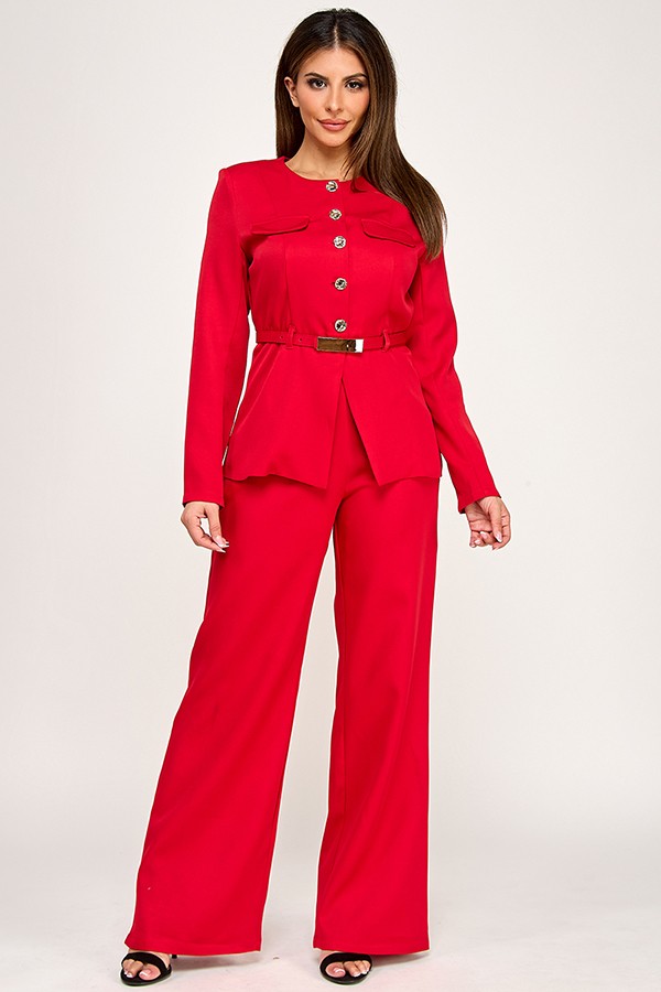 Be the first to review “Long Sleeve Line Fit Button Down Blazer And Wide Leg Pants Set” Cancel reply