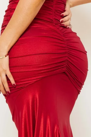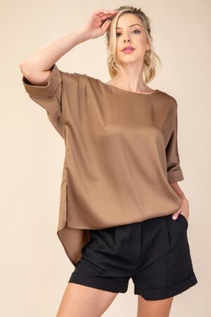 Crew Neck Sleeve Cuffs Oversized Satin Blouse