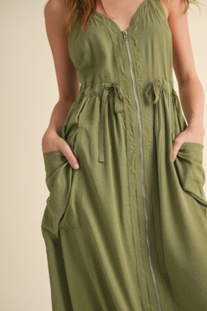 Utility Zip-up Midi Dress With Adjustable Drawstri